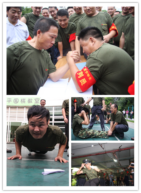 比賽分為六項。1、俯臥撐。2、仰臥起坐。3、蛙跳接力。4、扳手腕。5、隊列比賽。6、拔河比賽。同志們熱情高漲,軍人堅強(qiáng)、拼搏的氣息充滿了整個比賽場地。每個人的心中都流露出來一種不服輸?shù)臍鈩?。盡管我們已經(jīng)退伍多年,盡管我們的隊伍是臨時組建。站在了一起,站在了同一個連隊,喊著我們共同的口號,我們此刻就是軍人。就是一個連隊的兄弟。這就是軍人,就是偉大的中國人民解放軍。