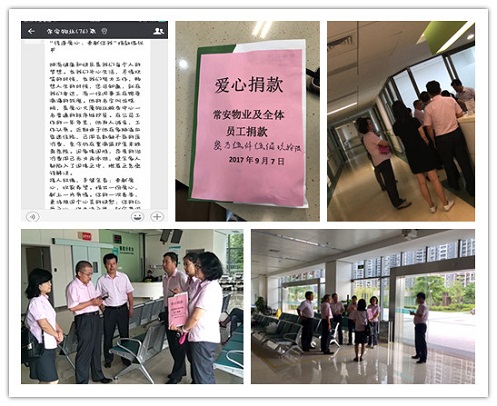 公司接到家屬消息后,非常關(guān)心,當(dāng)即安排人員及工會(huì)主席前往醫(yī)院探望并送上公司的關(guān)懷及5000元的慰問金。隨即在公司內(nèi)部及時(shí)組織全體員工發(fā)起了為龍曉明“傳遞愛心,奉獻(xiàn)你我”的捐款活動(dòng),公司上下反應(yīng)迅速,踴躍捐助。截止2017年9月6日,常安物業(yè)公司及全體員工共為龍曉明籌募善款35596元。2017年9月7日上午,公司領(lǐng)導(dǎo)班子等一行人前往醫(yī)院探視,將捐款送至龍曉明的家屬手中。公司領(lǐng)導(dǎo)向家屬表達(dá)了對(duì)龍曉明及家屬的關(guān)心和慰問,并鼓勵(lì)家屬積極面對(duì)認(rèn)真治療,也祝愿龍曉明能夠戰(zhàn)勝病魔,早日康復(fù)。公司工會(huì)會(huì)協(xié)助家屬通過(guò)向政府部門申請(qǐng)等形式,爭(zhēng)取獲得更多的社會(huì)扶助資金,從而減輕龍曉明家庭的經(jīng)濟(jì)負(fù)擔(dān)。