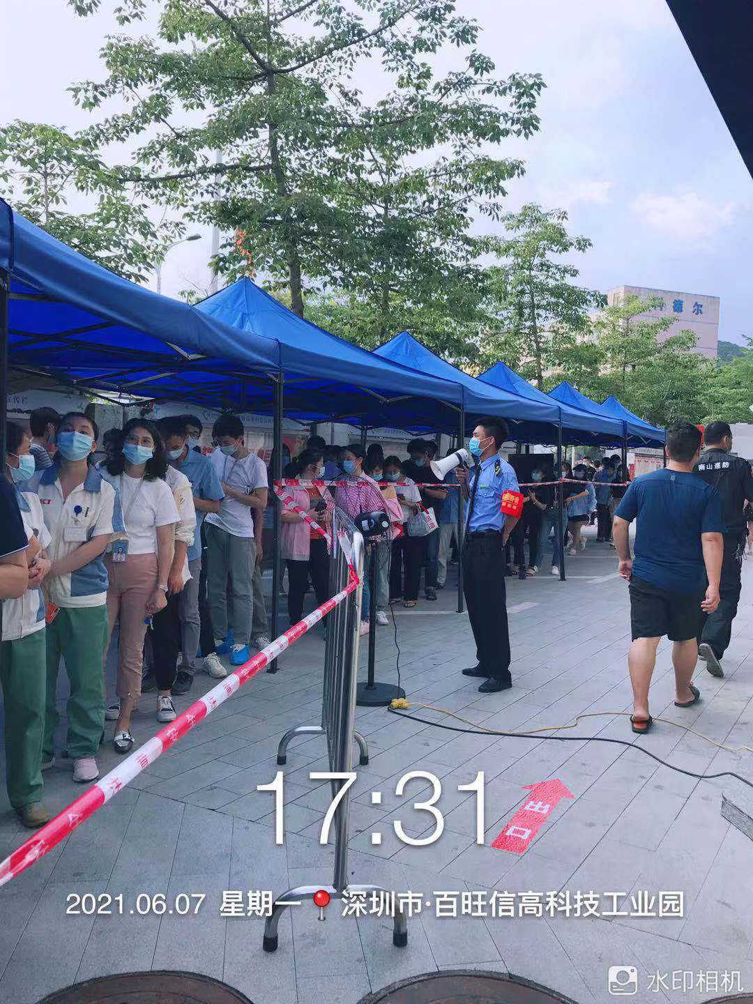 一、緊急協(xié)調(diào),布置圍擋。我司前海花園、崇文花園、百旺信高科技工業(yè)園、荔苑小區(qū)等多個服務(wù)中心接獲社區(qū)工作站通知的第一時間,各項目主任首當其沖、返回崗位,配合區(qū)防疫部門在小區(qū)/園區(qū)建立圍擋并開展新冠核酸檢測工作,并組織協(xié)調(diào)休假人員加入應急布置工作之中。